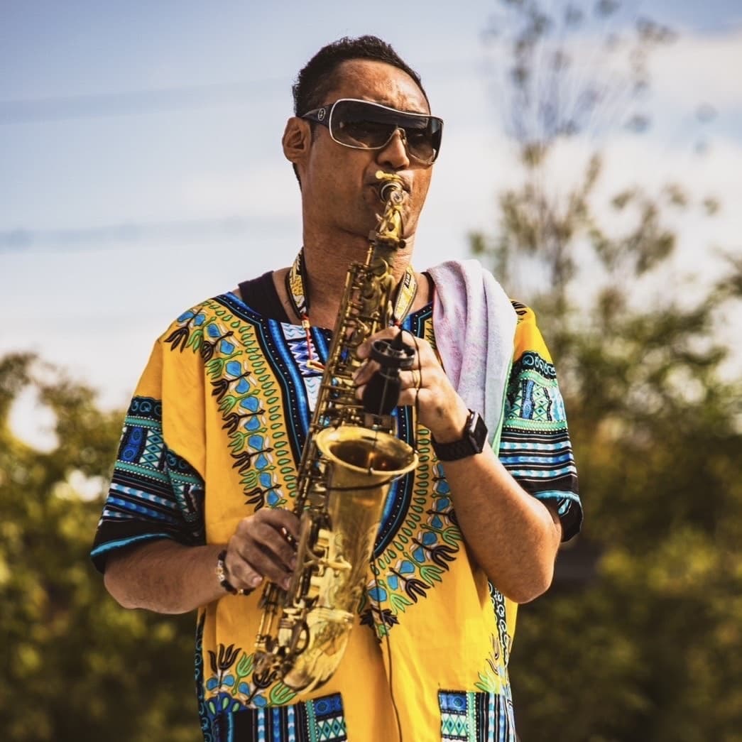 サックスプレイヤー弁慶さんによる音楽体験事業がスタートします。