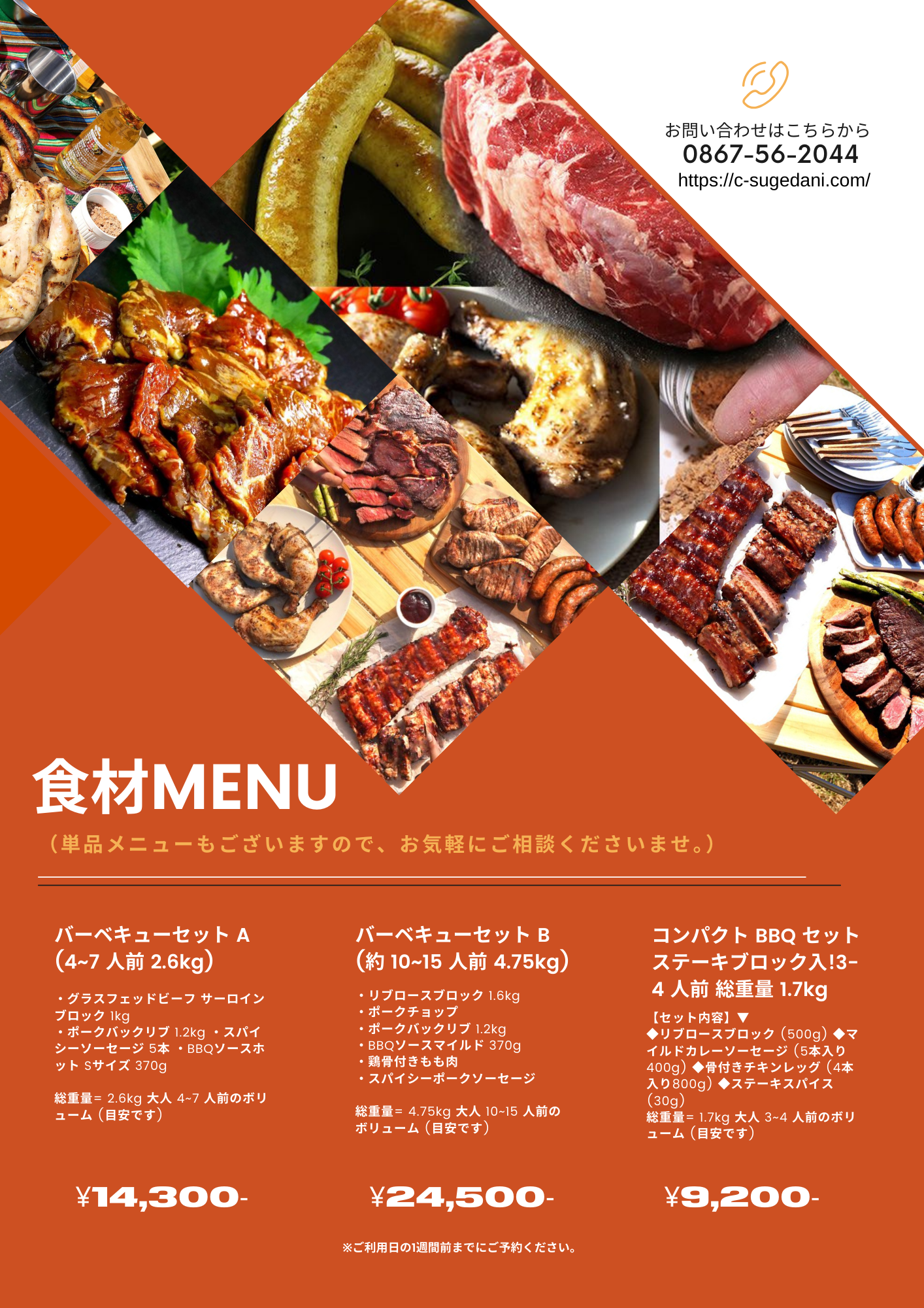 いつもクリエイト菅谷をご利用いただきまして、誠にありがとうございます。7月から予約制のBBQ食材販売をスタートしました。ソロから大人数まで対応できますので、お気軽にご相談くださいませ。