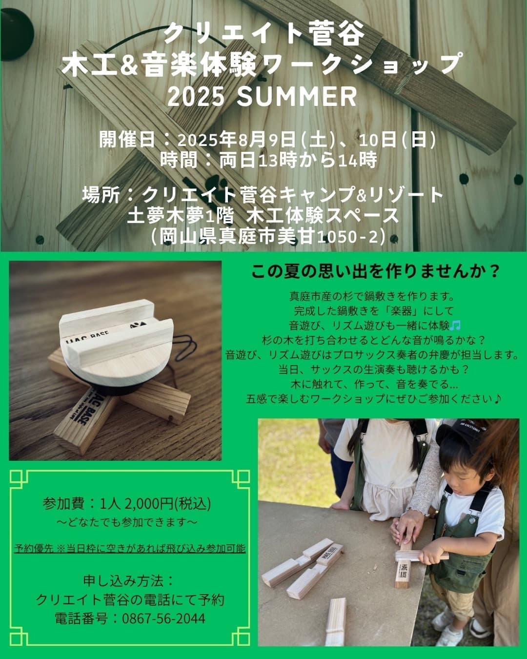 いつもクリエイト菅谷をご利用いただきまして、誠にありがとうございます。8月から木工房もものたねさんによる木工体験を行います。ぜひこの機会に体験してください!